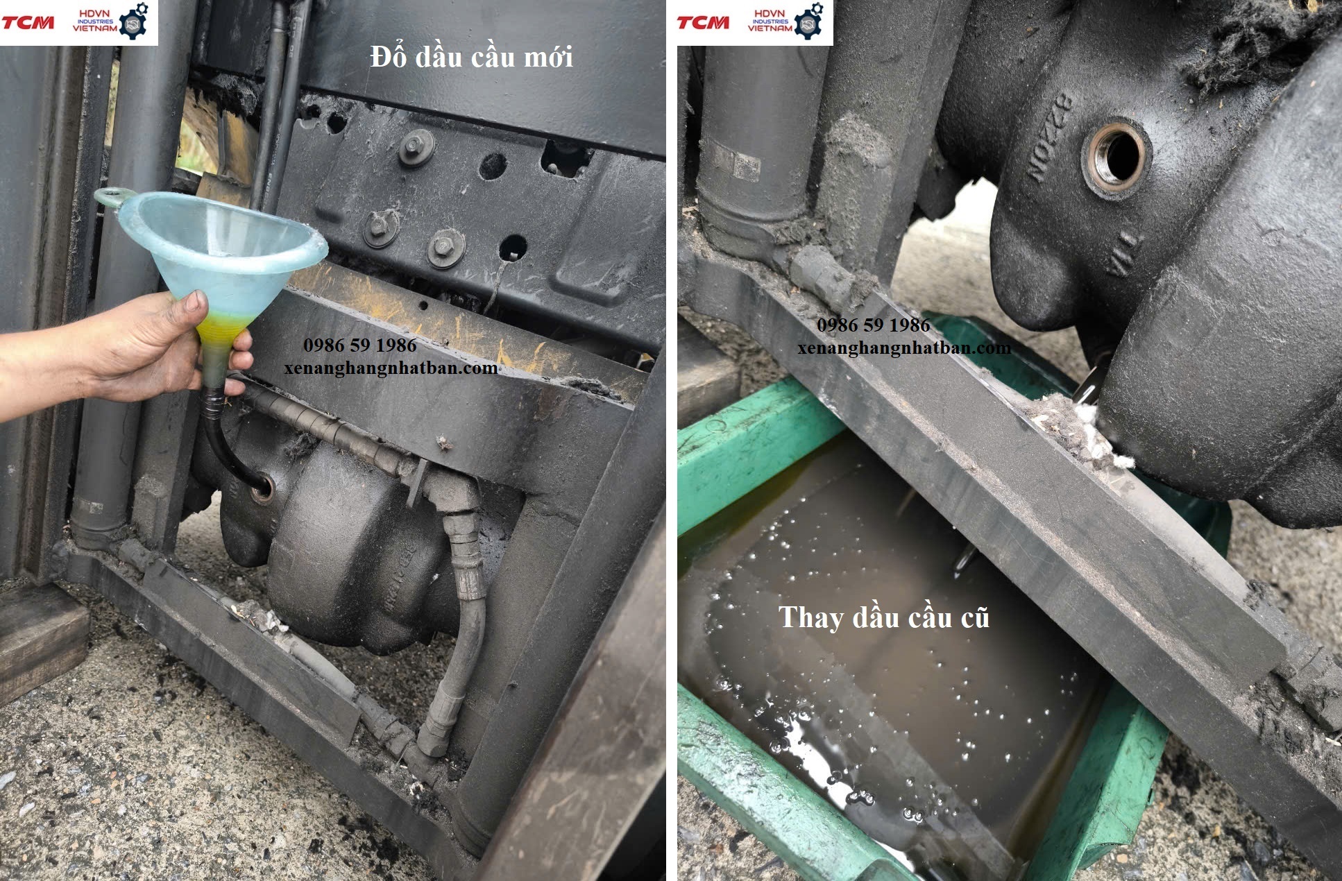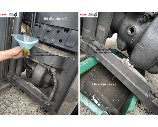 - Bảo dưỡng thay dầu toàn bộ xe (bao gồm dầu động cơ, dầu thủy lực, dầu hộp số, dầu cầu, dầu phanh) và bôi mỡ khung nâng, bơm mỡ các vú mỡ.