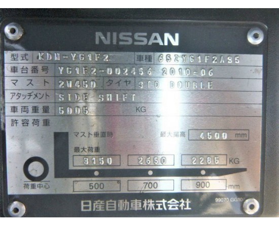 Tải trọng nâng còn 3150kg tại chiều cao nâng 4m5, tâm tải 500mm