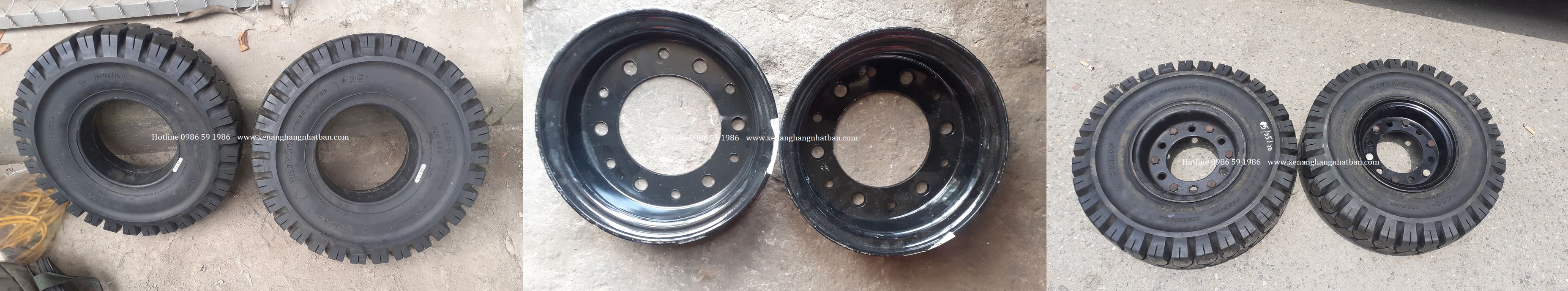 Lốp đặc Dunlop 5.00-8/3.00 - Cùng larang 6 lỗ, lỗ láp 11cm - chuyên dùng cho xe nâng 1.5 tấn và xe nâng 1.8 tấn
