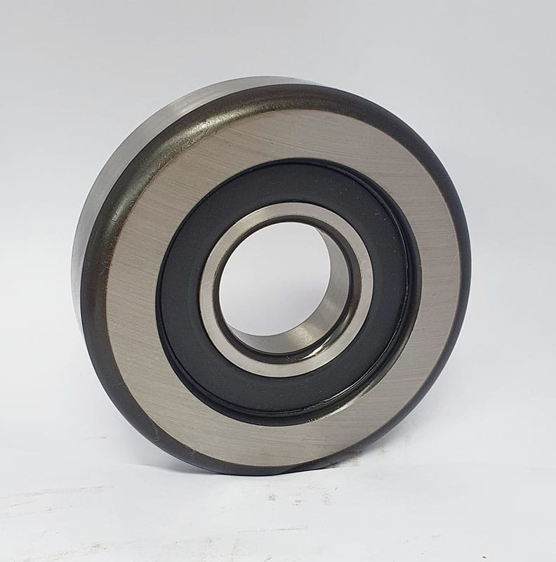 - Ngoài ra, còn có 2 vòng bi dẫn xích (hình dạng như ròng dọc) để kéo giá nâng lên cao. Do đó, 2 vòng bi này sẽ chịu tải trọng nâng lớn nên các con lăn được thiết kế có dạng hình trụ. Người ta còn gọi là bạc đạn khung nâng, vòng bi dẫn hướng xe nâng, bạn đạn dẫn hướng xe nâng.